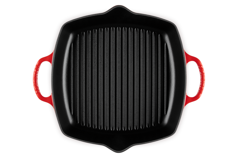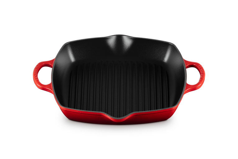 Notre gril carré profond en fonte émaillée est un excellent ustensile pour préparer des plats délicieux et sains. Sa taille permet de saisir rapidement et uniformément de belles pièces de viande rouge et de volaille et même de poêler des légumes. Les stries évacuent l’excès de graisse et les hautes parois réduisent le risque d’éclaboussures de cuisson et contiennent les jus lors de la préparation de sauces. Et les stries du gril impriment sur vos grillades de superbes lignes. Les deux poignées facilitent son maniement, et les becs verseurs le service.