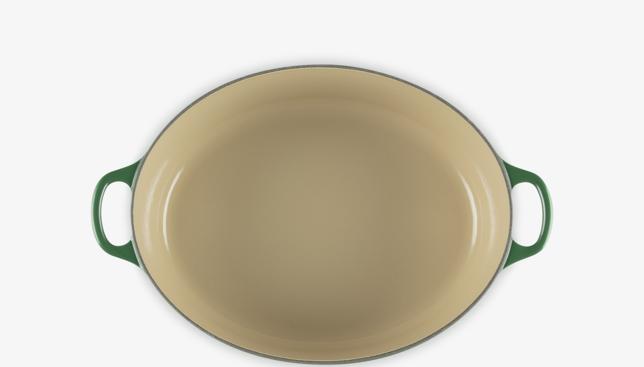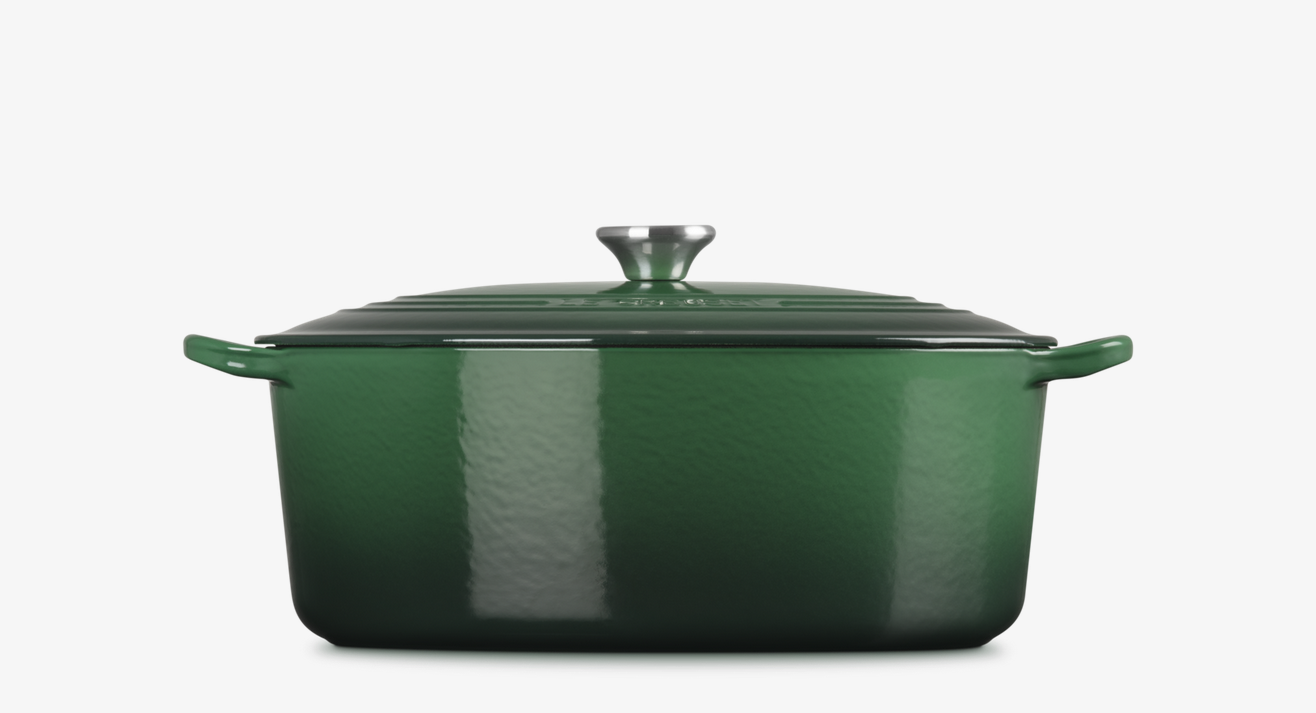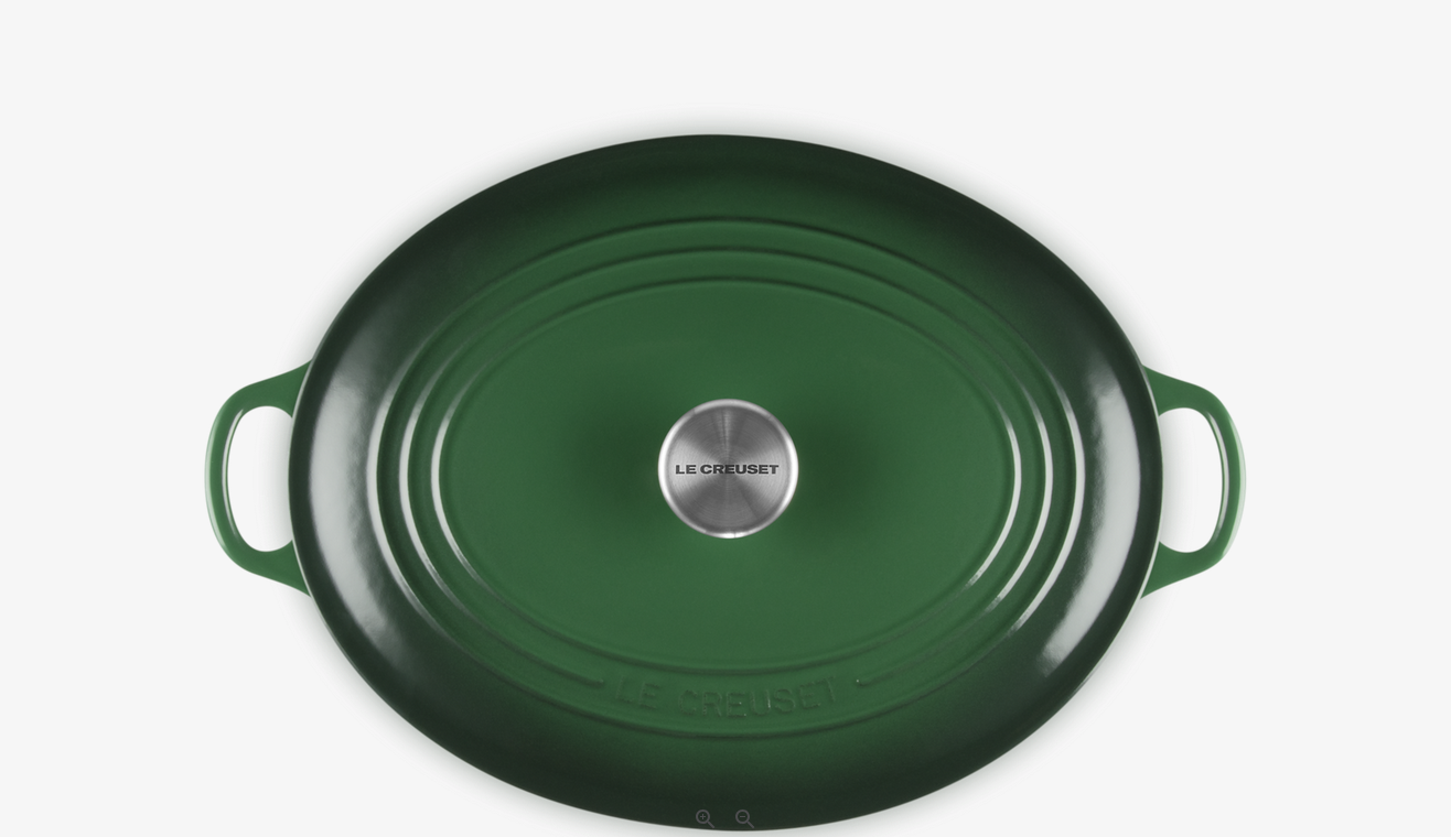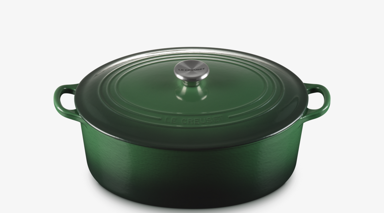 Cocotte ovale 31 cm en fonte émaillée, Juniper vert, bouton inox, Le Creuset, 267.0 EUR