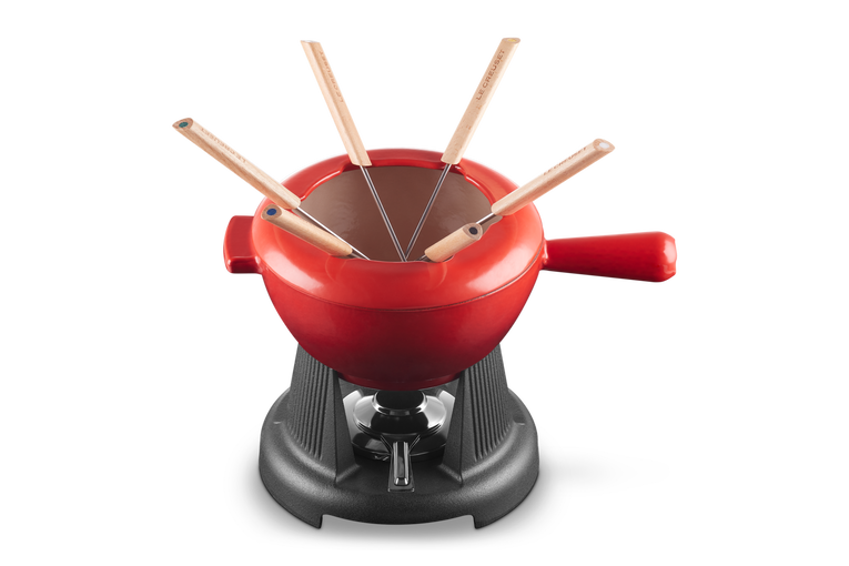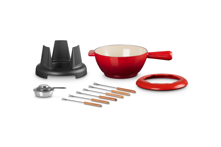 Ce service à fondue spectaculaire rassemble tout ce dont vous avez besoin pour une soirée fondue conviviale. Vous découvrirez un caquelon avec deux poignées et une protection anti-éclaboussures, un réchaud, six fourchettes et même un livret de recettes avec de délicieuses idées. Alors, qu’allez-vous choisir ? Fondue au fromage ou au chocolat ?