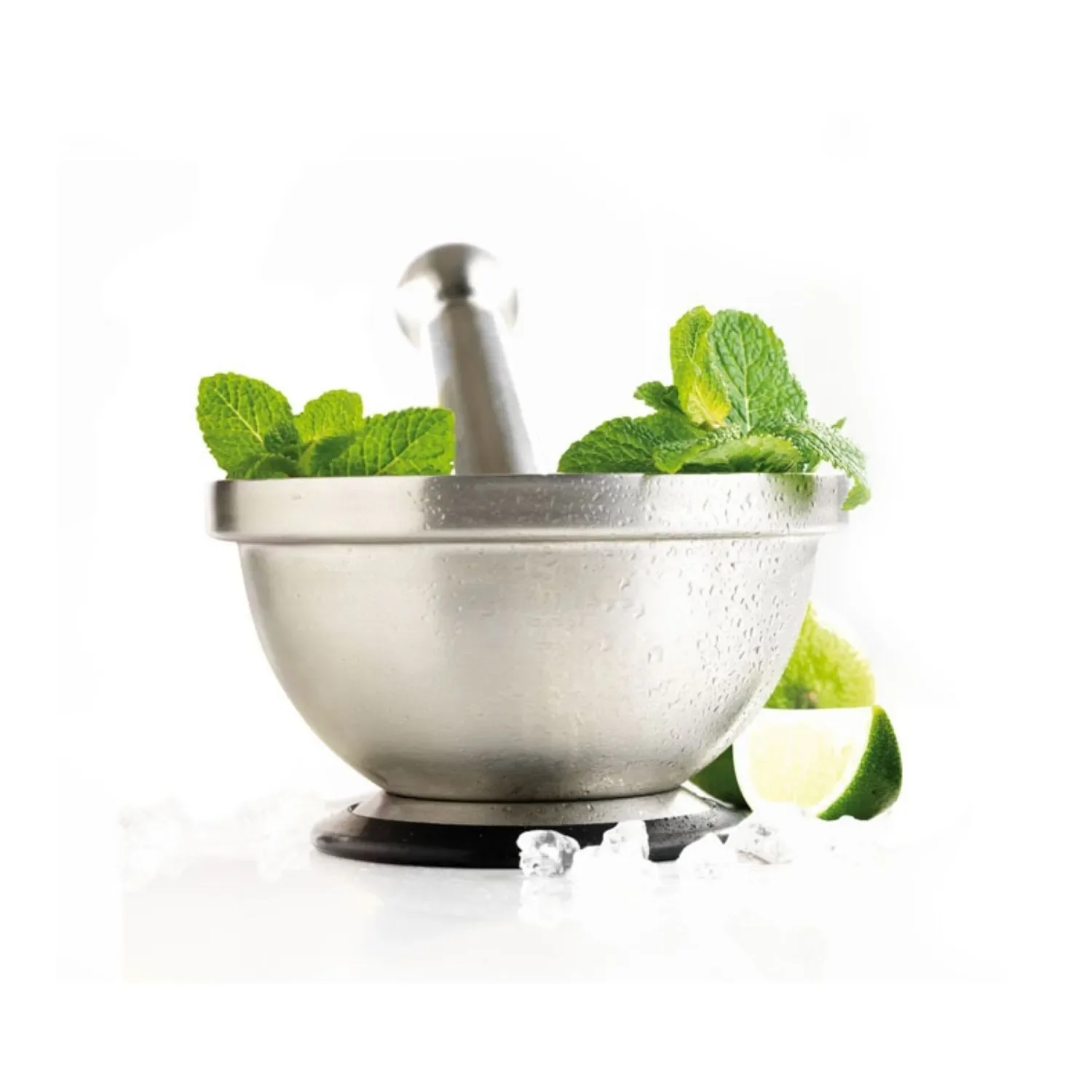 Conçu en inox, ce mortier est idéal pour moudre et piler les épices, les herbes et pour les préparation des cocktails.