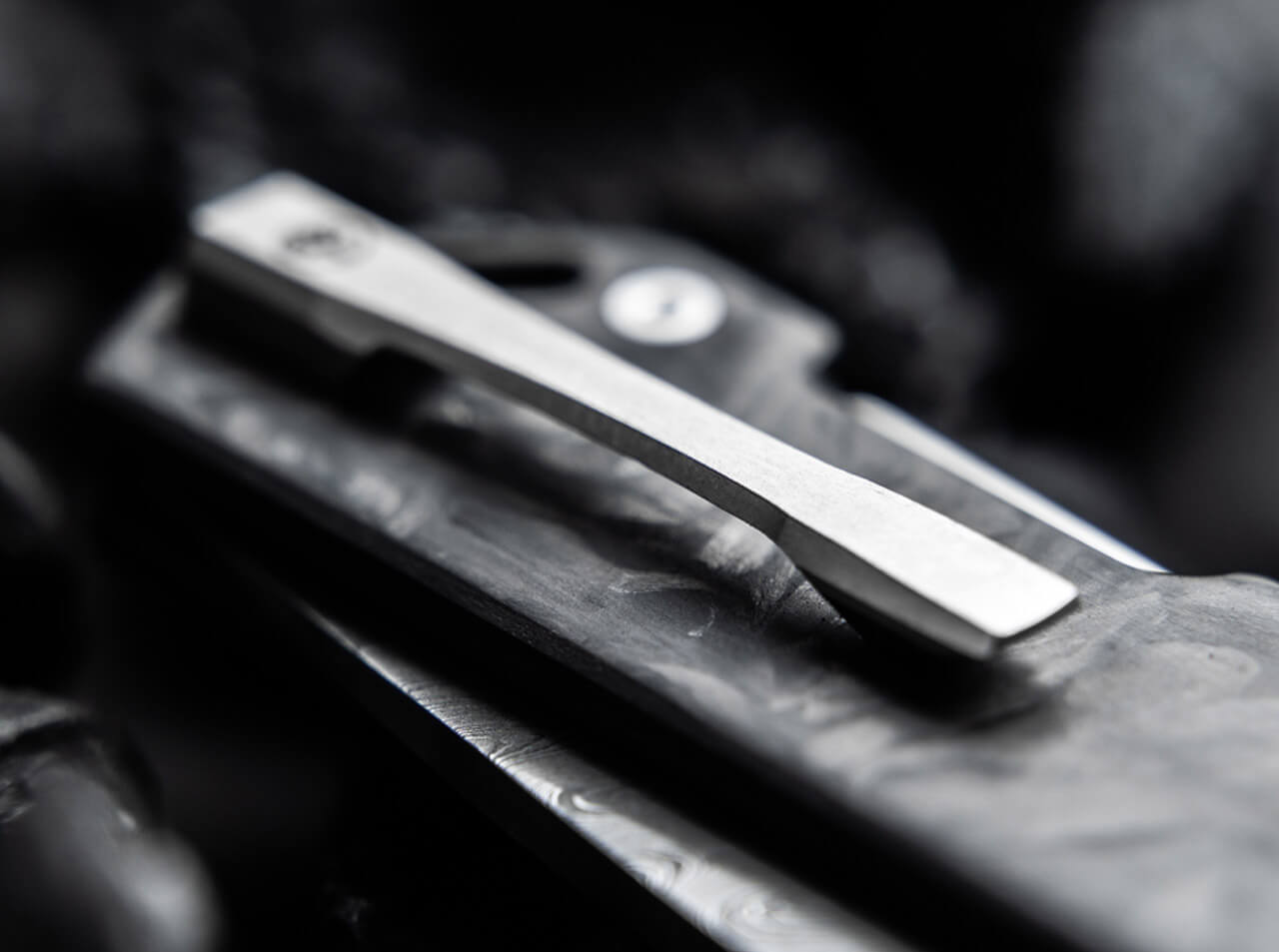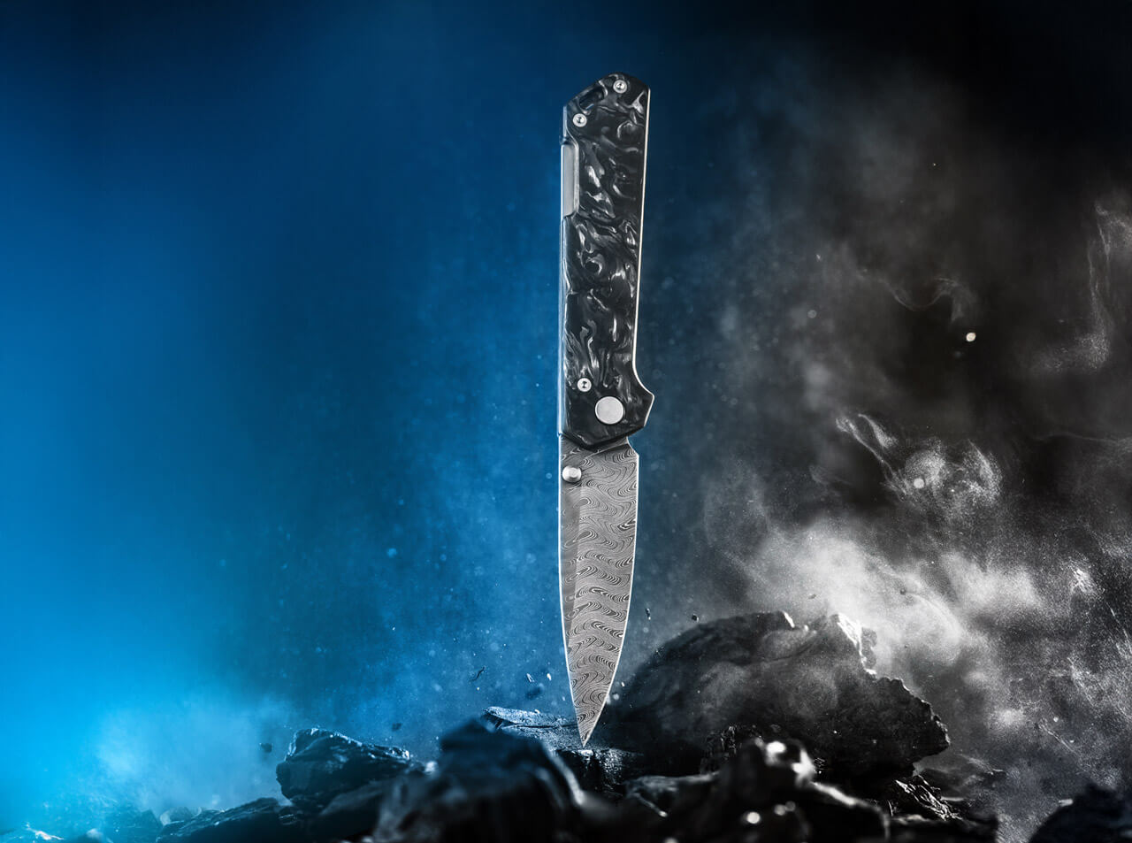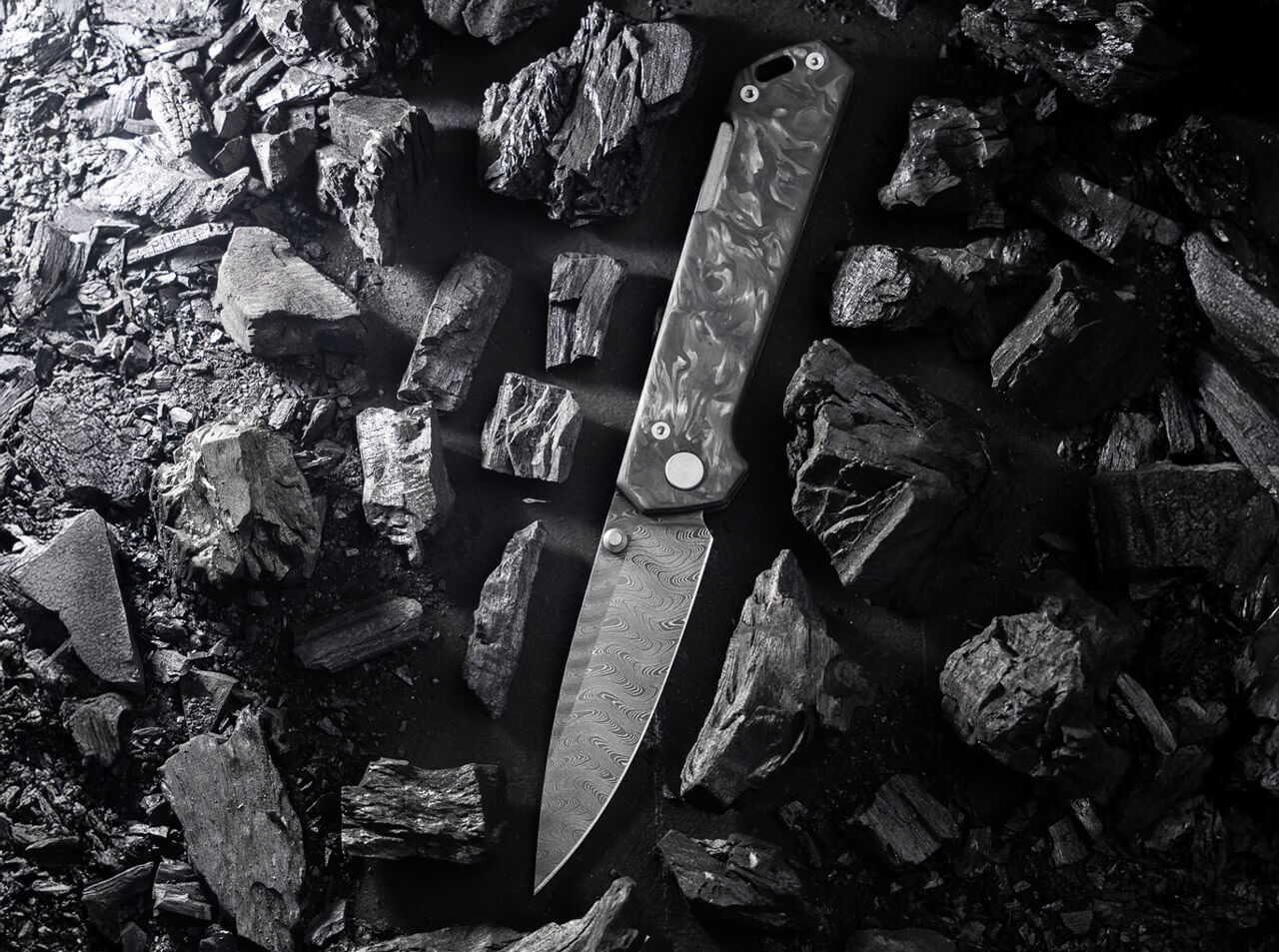 Sentez la puissance de sa lame en damas à 160 couches, avec son motif d'échelle hypnotique qui danse sous la lumière. Le déploiement fluide et sécurisé, grâce au thumb stud et au back-lock robuste, procure une sensation de contrôle total et de sécurité absolue.
