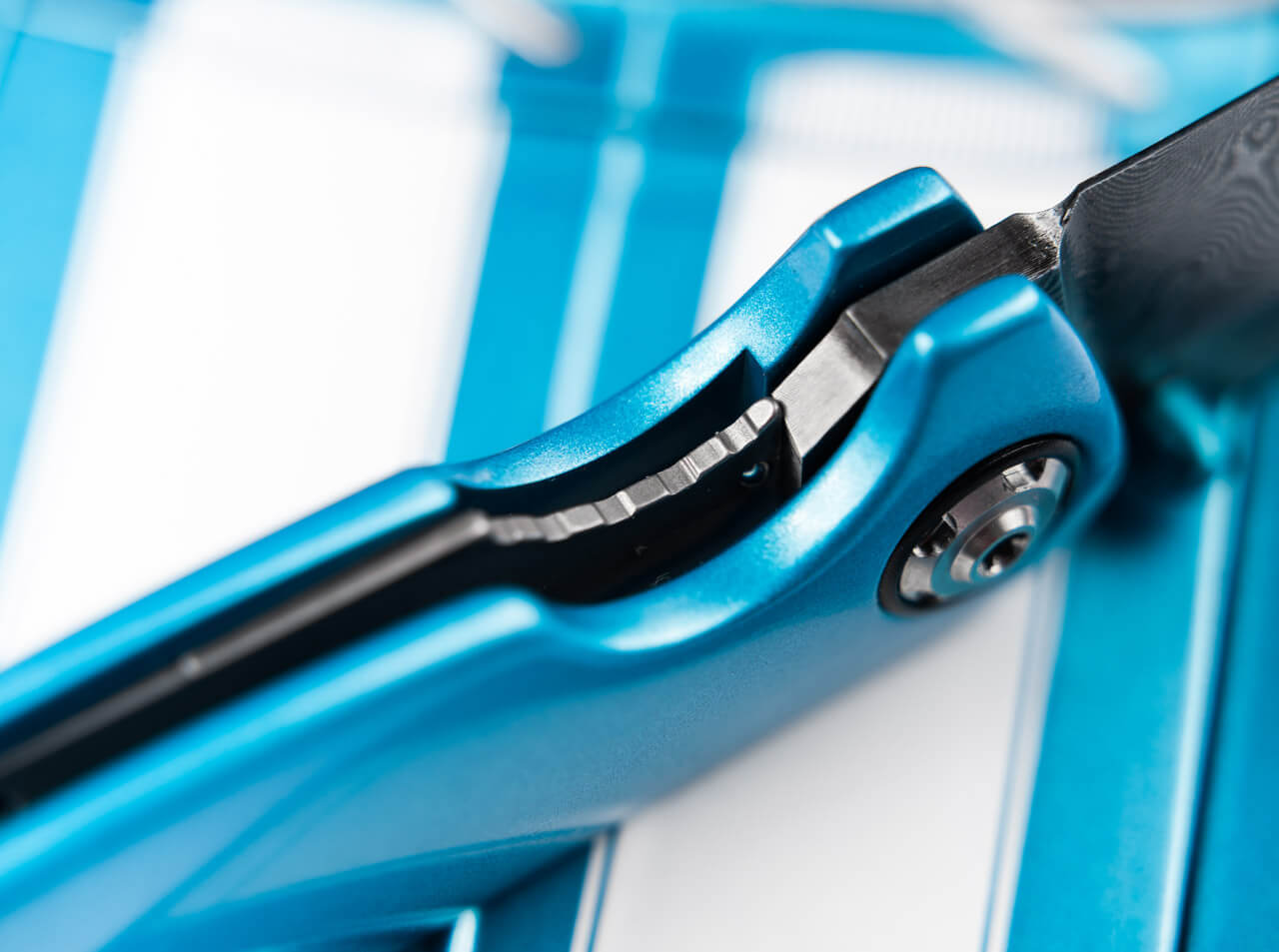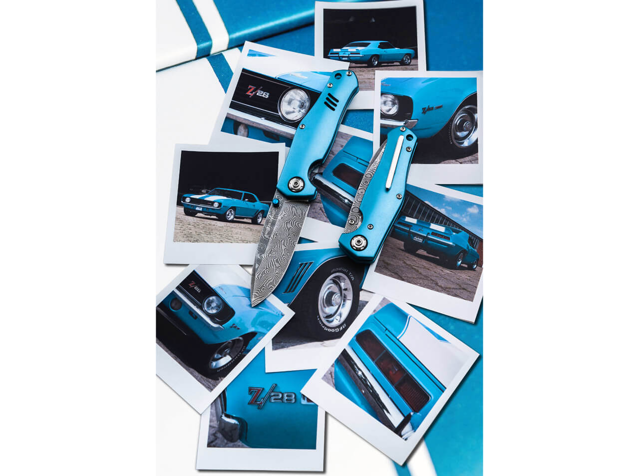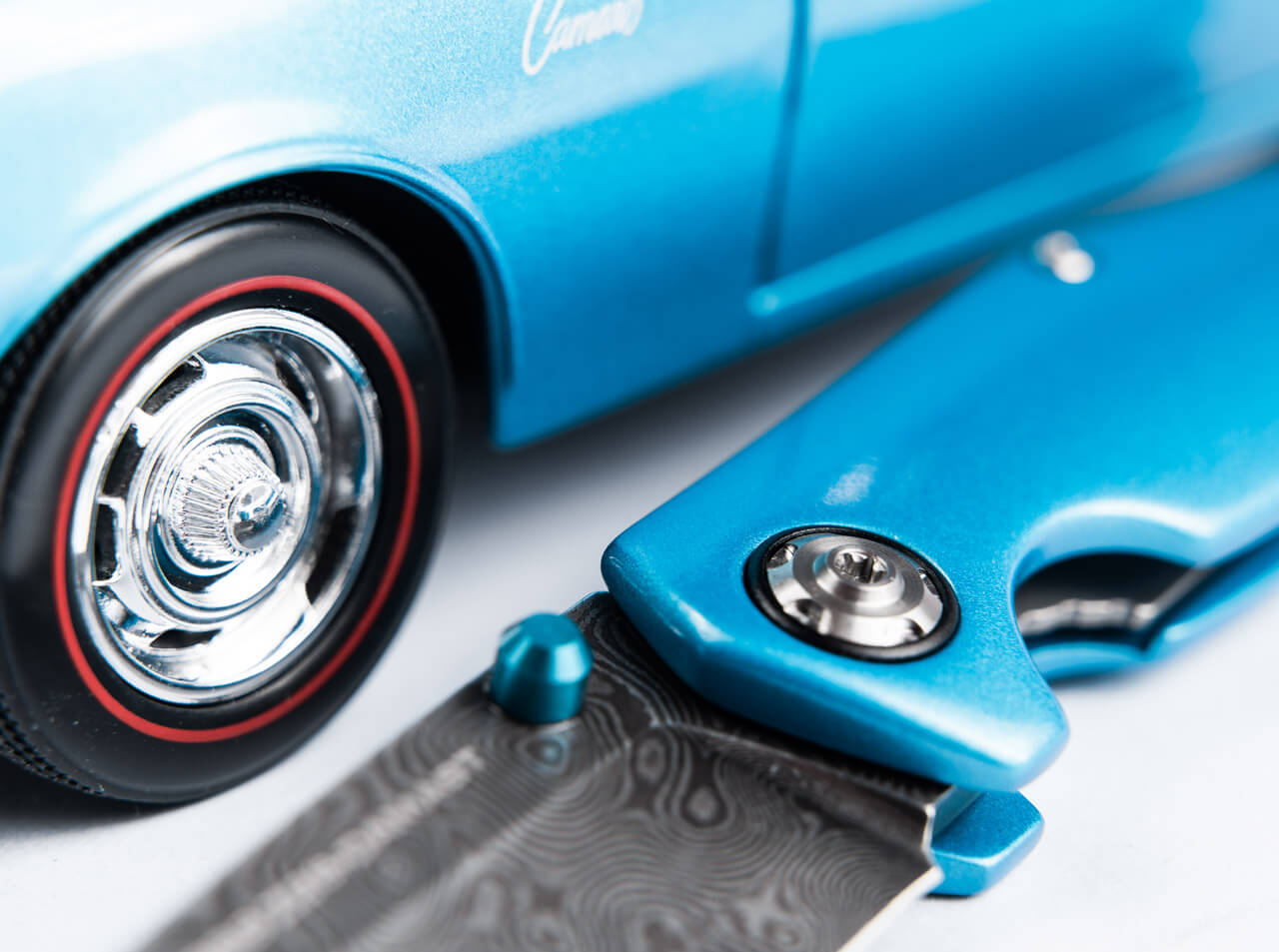 Conçu par le maître italien Tommaso Rumici, ce couteau reprend les lignes mythiques de la Camaro Z28 : capot incliné, prises d'air agressives, spoiler discret. La poignée en aluminium laqué "Le Mans Blue", fidèle à l'original, évoque les courbes sensuelles d'une voiture de course. Ouvrez la lame d'un geste fluide grâce au bouton-pouce bleu, et laissez-vous envahir par le sentiment de maîtrise absolue. Chaque détail – du clip en acier inoxydable chromé aux vis inspirées des jantes – respire l'authenticité et la passion automobile.