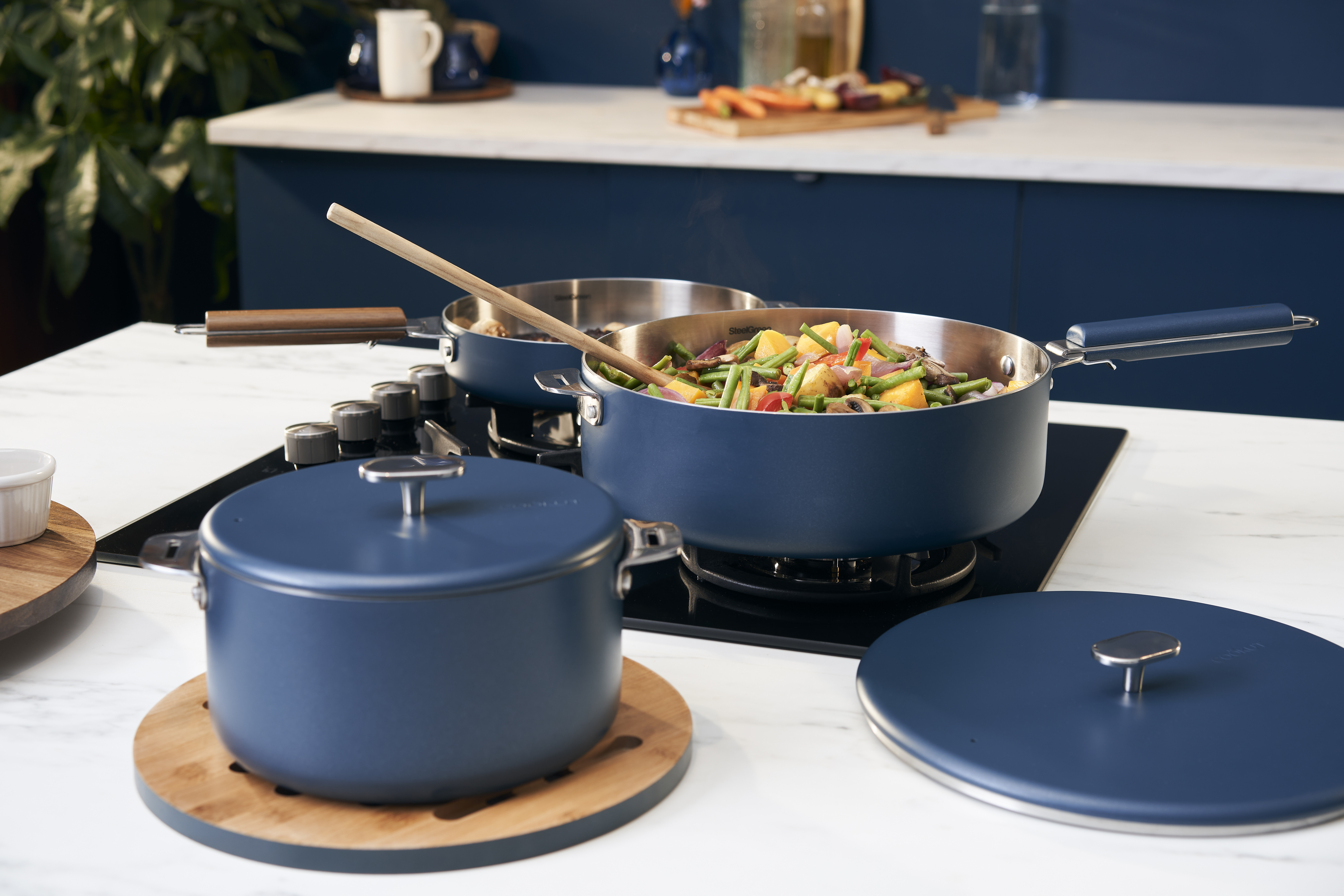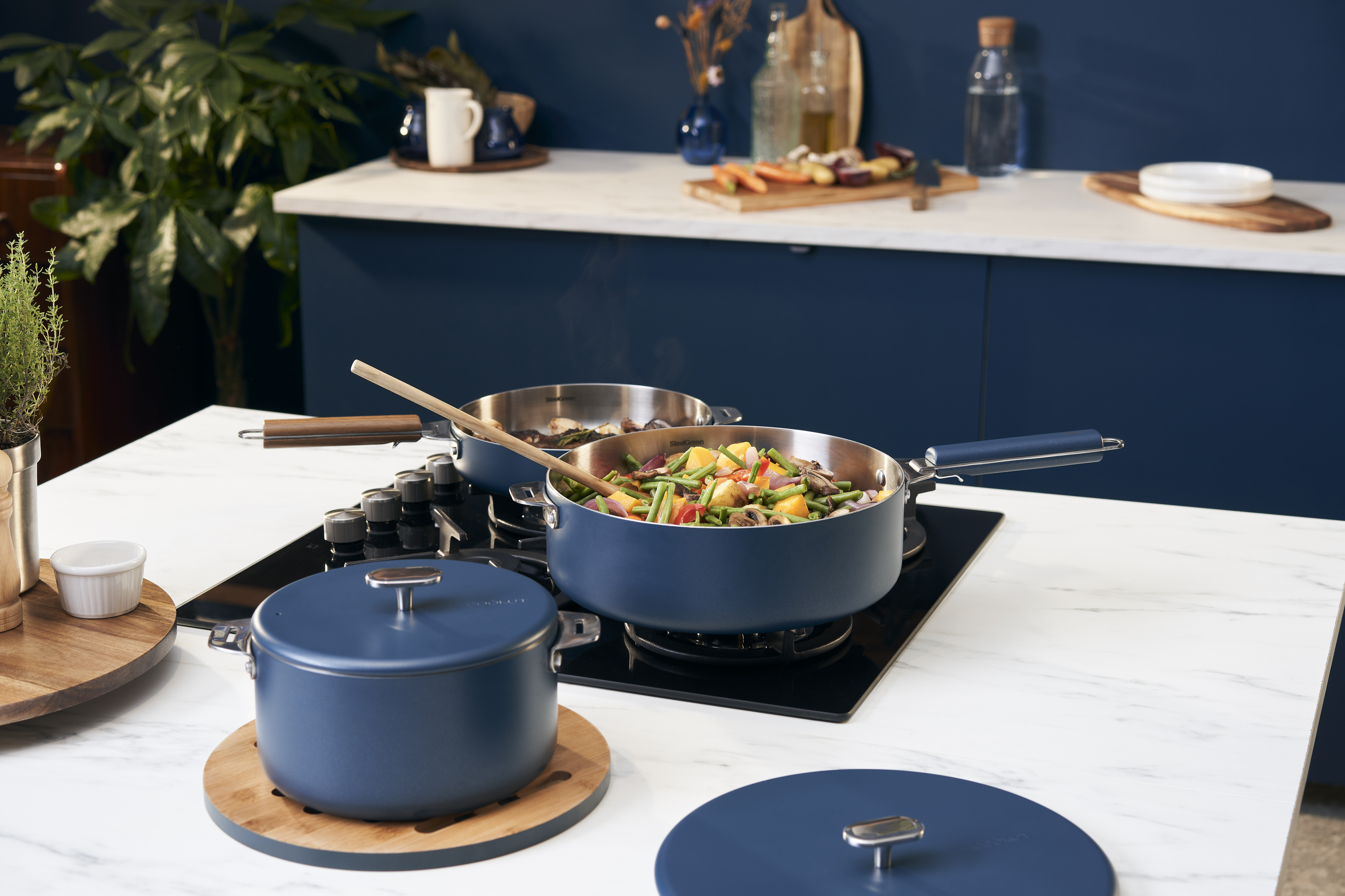 La Merveilleuse propose une alternative aux gammes d’inox traditionnelles avec un produit performant, sain et plus vertueux dans sa fabrication. L’inox SteelGreen est une vraie révolution, c’est un inox haut de gamme 3-plis, sans nickel, renforcé en titane et cuivre avec un cœur en aluminium recyclé. Cet inox sain, sans risque de migration de nickel, garantit des performances de cuisson optimales.