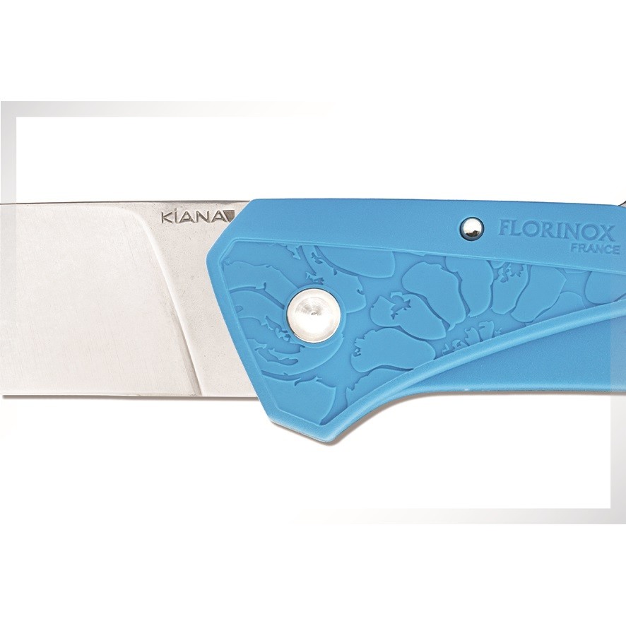 Couteau FLORINOX « KIANA », lame à cran acier X35Cr16N, manche 11 cm polyamide chargé en fibre de verre bleu motif « mer ». longueur total ouvert : 200mm longueur lame : 90mm longueur manche :115mm...