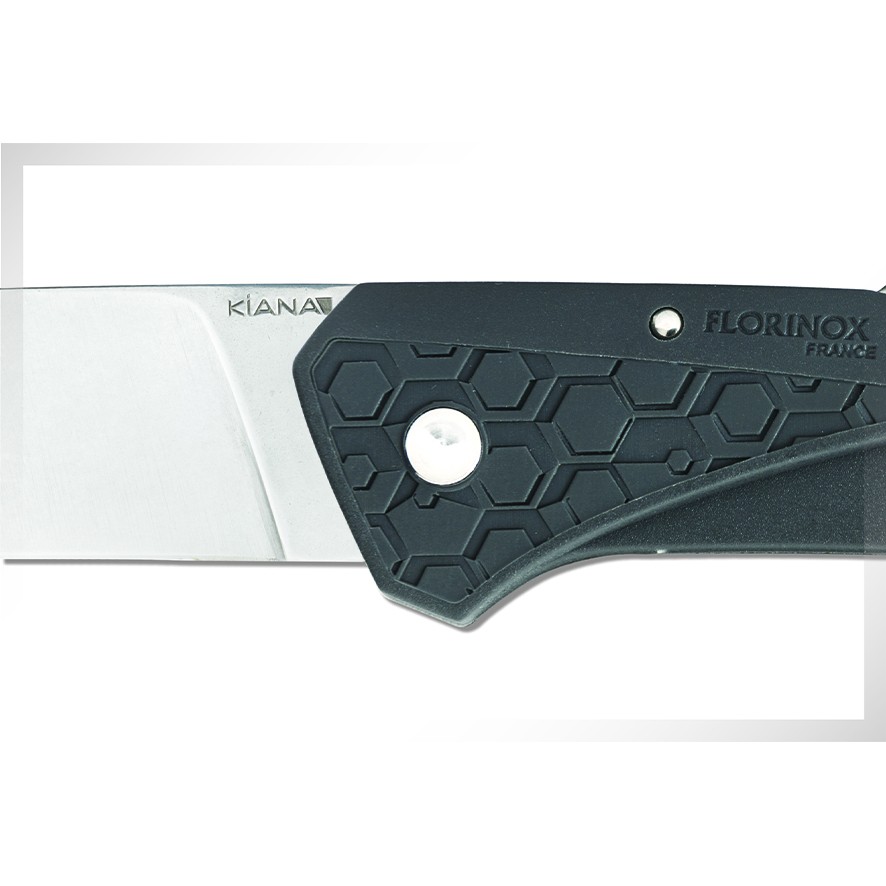 Couteau FLORINOX « KIANA », lame à cran acier X35Cr16N, manche 11 cm polyamide chargé en fibre de verre gris anthracite motif « origine ». longueur total ouvert : 200mm longueur lame : 90mm lame...