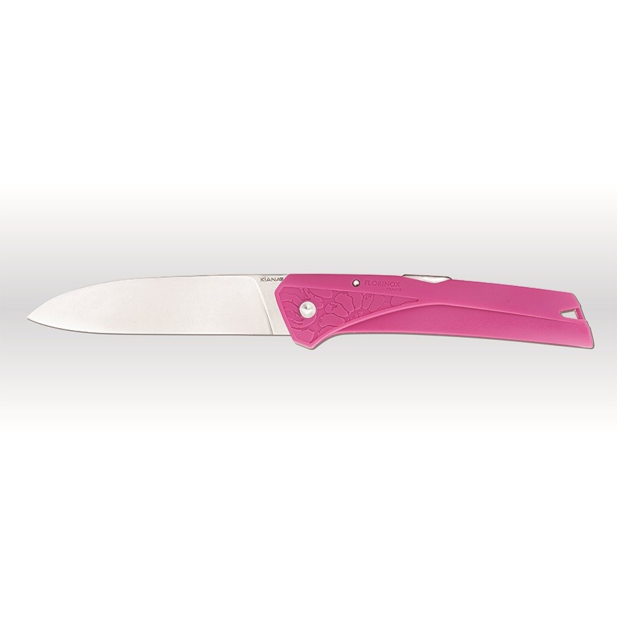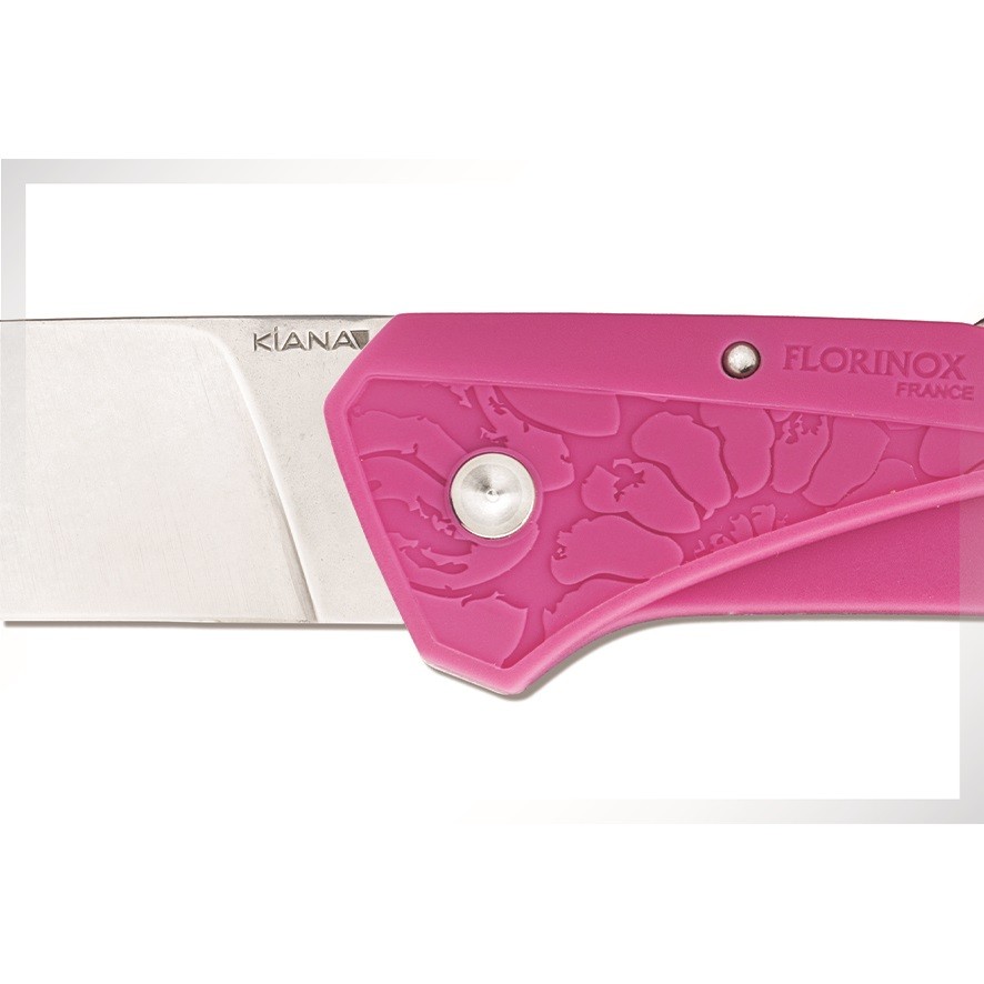 Couteau FLORINOX « KIANA », lame à cran acier X35Cr16N, manche 11 cm polyamide chargé en fibre de verre rose motif « mer ». longueur total ouvert : 200mm longueur lame : 90mm lame lisse longueur...