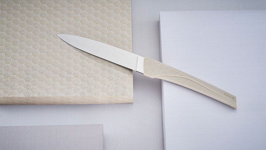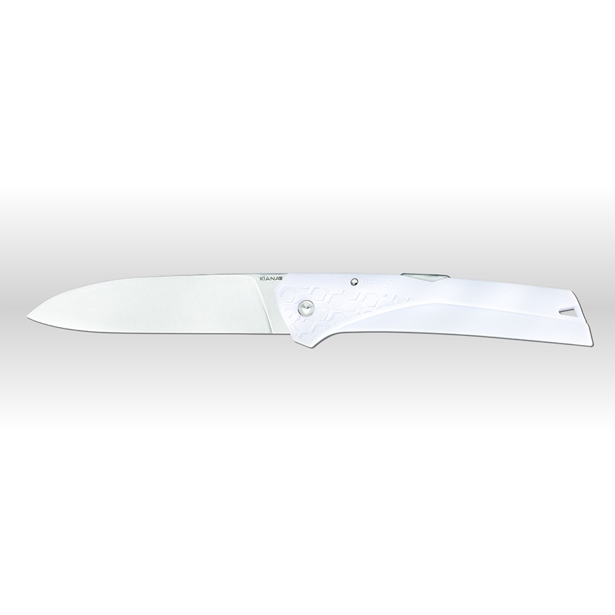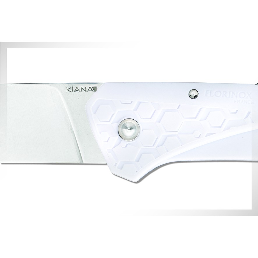 Couteau FLORINOX « KIANA », lame à cran acier X35Cr16N, manche 11 cm polyamide chargé en fibre de verre blanc motif « origine ». longueur total ouvert : 200mm longueur lame : 90mm lame lisse...
