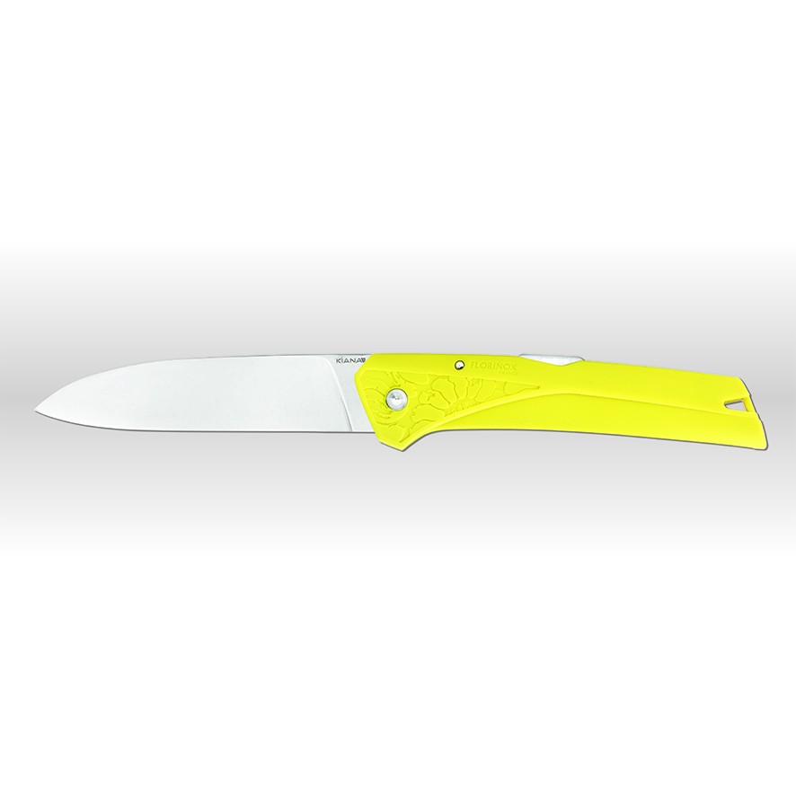 Couteau FLORINOX « KIANA », lame à cran acier X35Cr16N, manche 11 cm polyamide chargé en fibre de verre jaune motif « mer ». longueur total ouvert : 200mm longueur lame : 90mm lame lisse longueur...