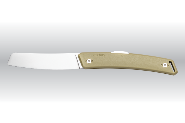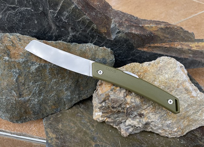 Couteau FLORINOX « CLOVIS », lame sheepfoot à cran (pompe centale) acier inox X35Cr16N, manche 12 cm polyamide chargé en fibre de verre vert « LIZARD ». CLOVIS, le couteau franc Dimensions et poids...