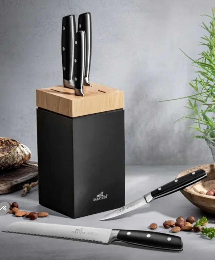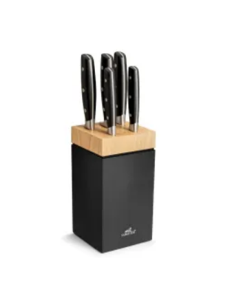 Il accueille une sélection de 5 couteaux de la gamme Janus, conçus pour répondre aux besoins essentiels du quotidien : émincer, trancher, découper… avec efficacité et confort. Les lames en acier inoxydable offrent un tranchant fiable et durable, idéal pour une utilisation régulière.