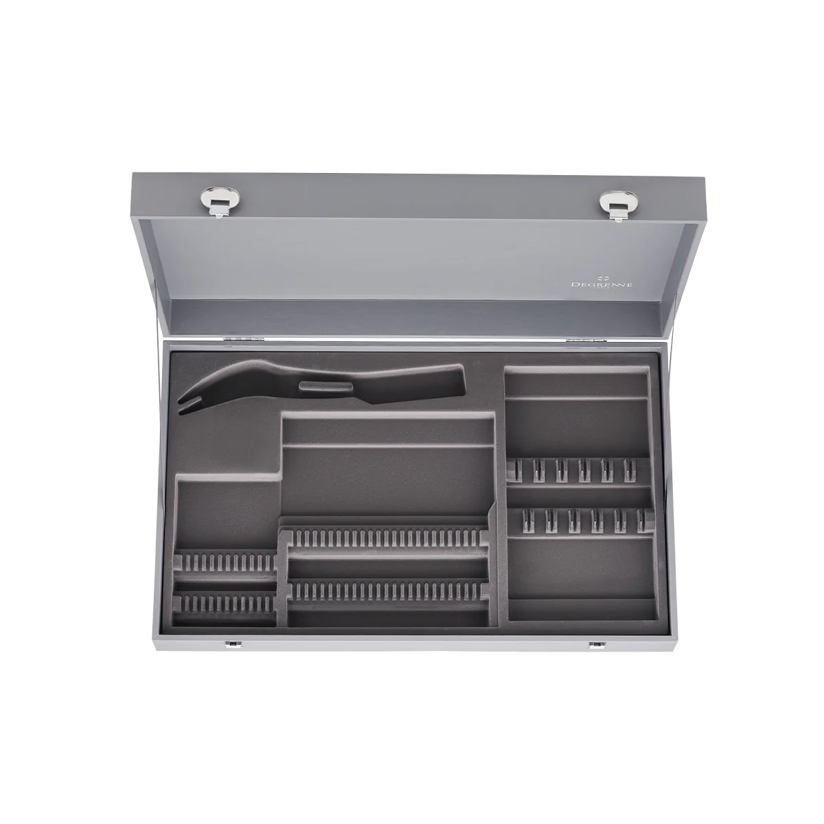 Découvrez l'écrin 50 couverts Guy Degrenne, un accessoire indispensable pour préserver l'éclat de votre service de table. Conçu avec une feutrine douce spécialement étudiée, cet écrin de rangement est idéal pour protéger vos couverts contre les rayures et les ternissures.
