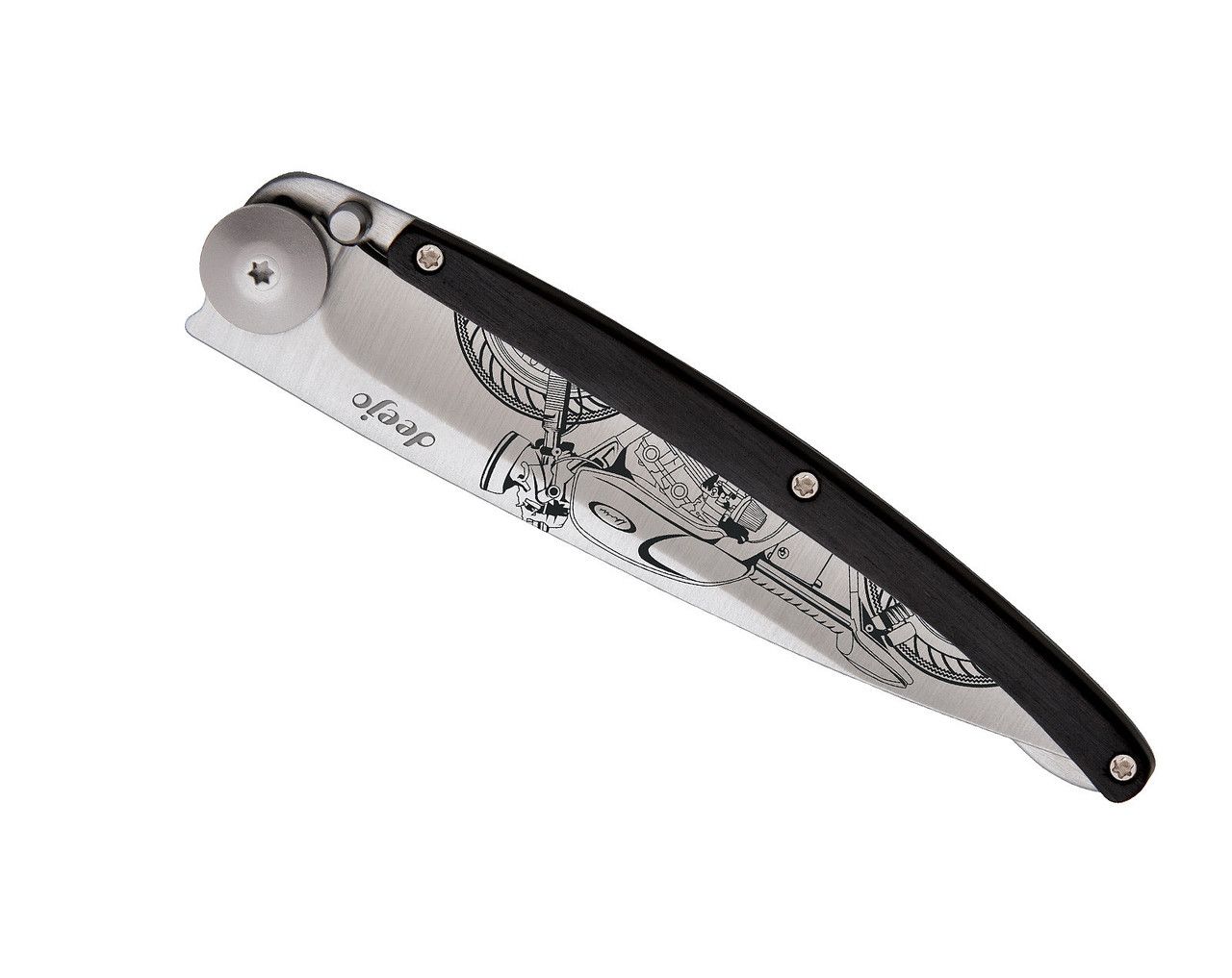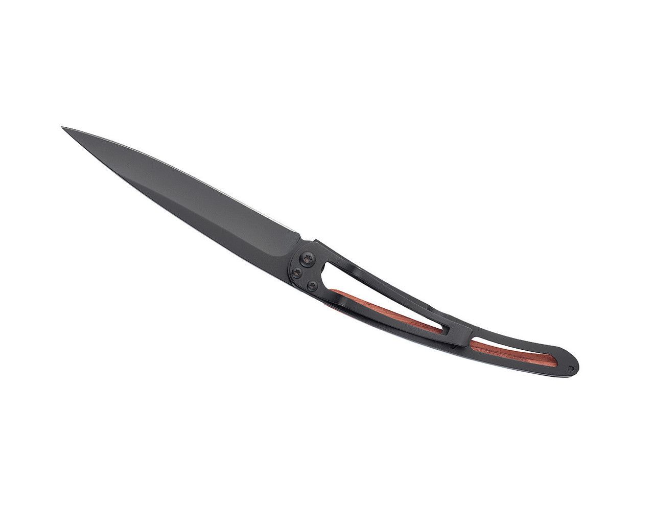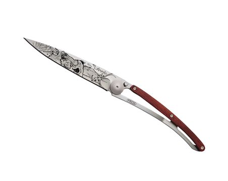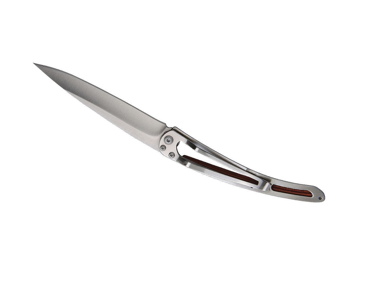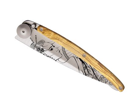 Deejo Possibilité de choisir son manche olivier, bois de corail, ébène, genévrier, fibre de carbone ; lors de votre commande choisissez le manche qui habillera votre Deejo ! Couteau ultra léger...