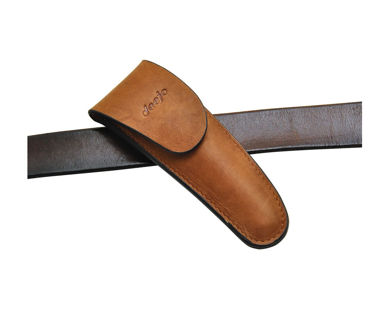 Deejo Les couteaux Deejo se portent aussi avec élégance à la ceinture. DESCRIPTION Etui de ceinture en cuir de veau véritable, tanné de couleur marron clair. Surpiqure en fil nylon de couleur...