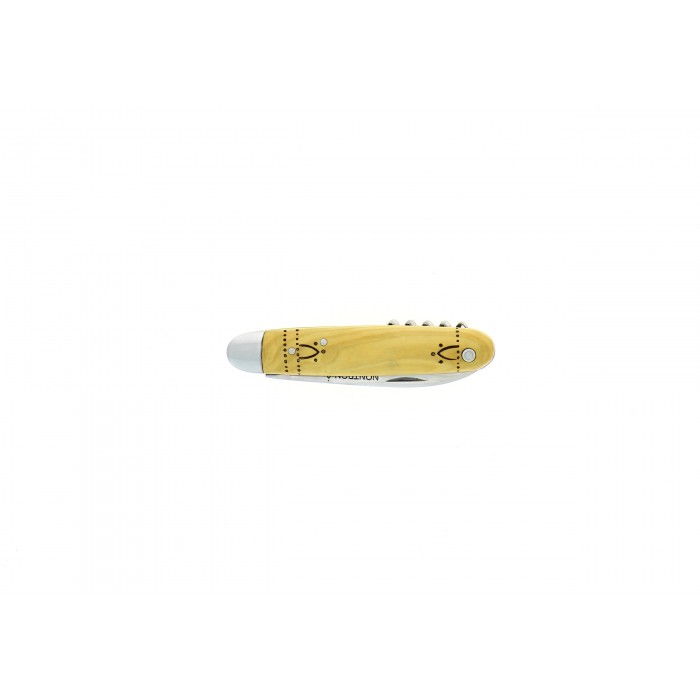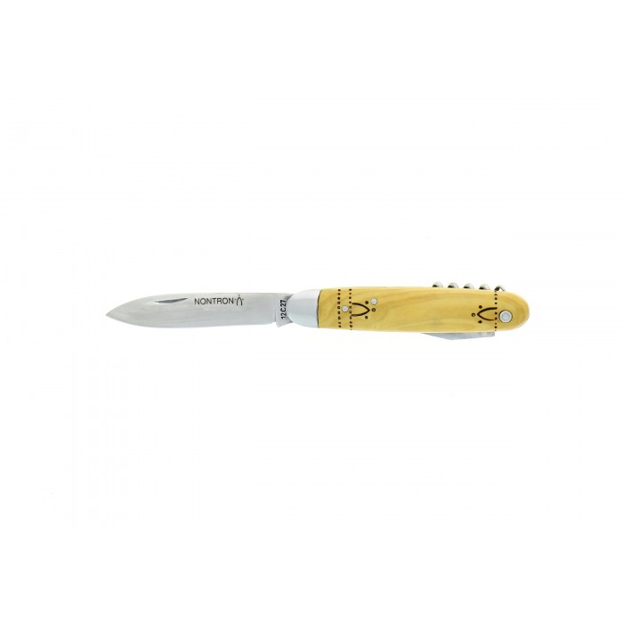 Avec ses 3 pièces essentielles – lame affêtée, tire-bouchon et décapsuleur-ouvre-boîte – ce couteau de poche Nontron s'adapte à vos envies : découper avec précision, ouvrir une bouteille pour un apéro improvisé ou accéder à vos conserves favorites. Léger et compact, il glisse facilement dans votre poche pour être toujours prêt.