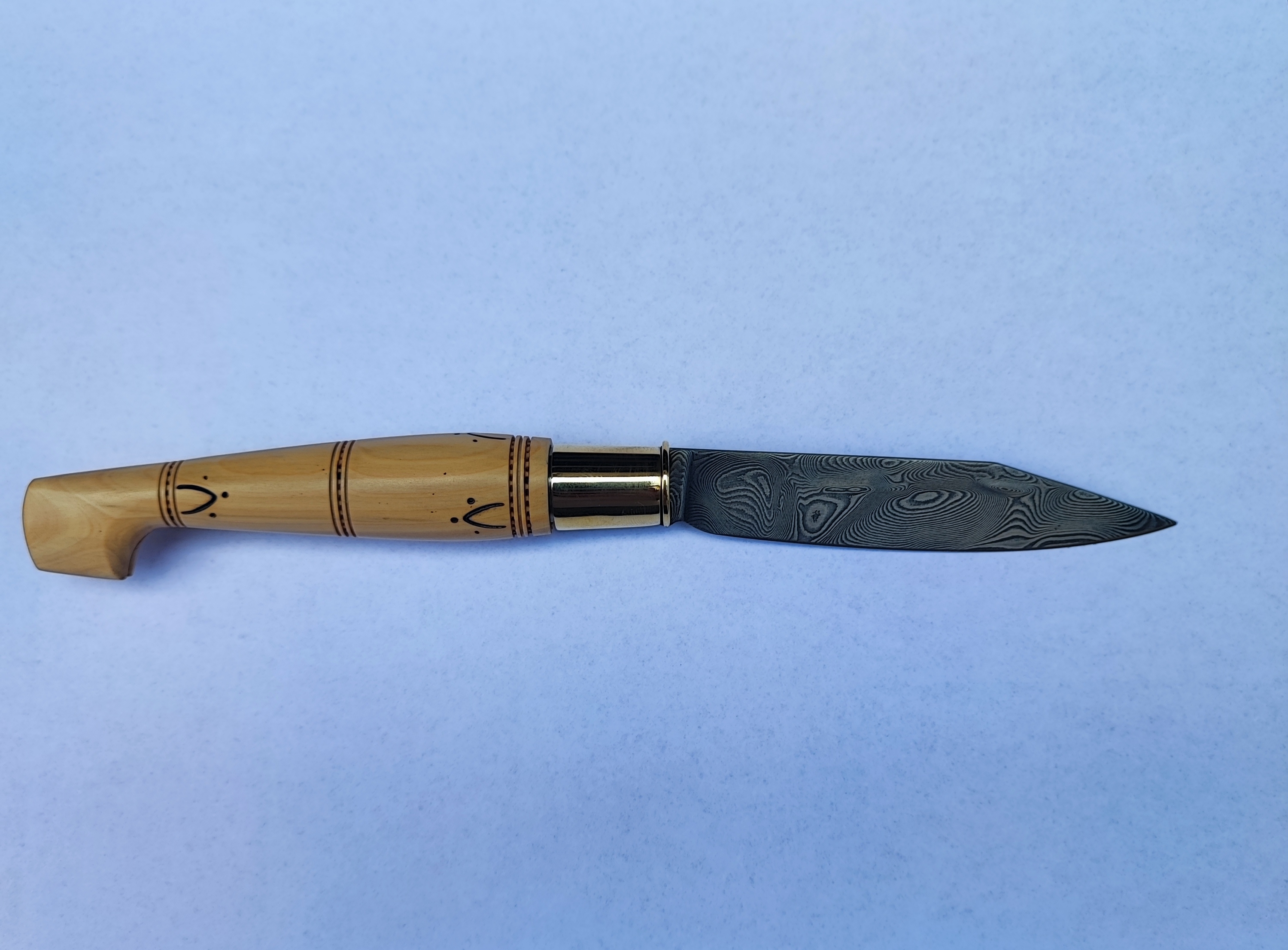Le couteau Nontron avec virole en laiton et manche en buis de 12 cm est une pièce maîtresse de la coutellerie française. Sa lame en Damas, reconnue pour son tranchant et sa durabilité, en fait un outil à la fois fonctionnel et esthétique.