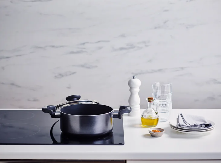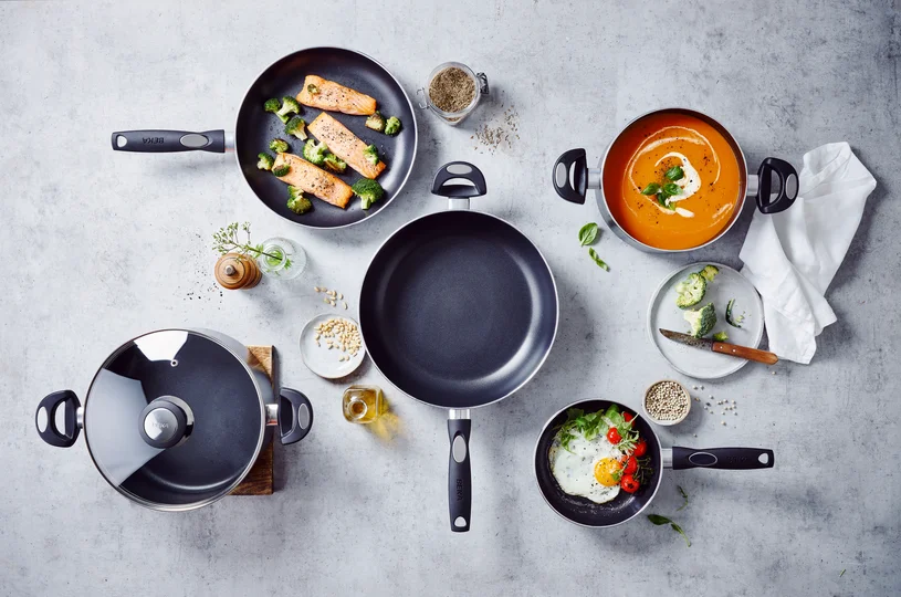 Cuisine saine et avec moins de graisse avec Pro Induc! La collection en aluminium la plus vendue de Beka, 100% sans PFAS grâce au revêtement antiadhésif en céramique. Fabriquée à partir d'aluminium 100% recyclé. Pour la production de nos ustensiles de cuisine en aluminium, nous utilisons de l'aluminium certifié RCS. Le revêtement antiadhésif en céramique avec motif en nid d'abeille réduit le contact entre la graisse et les aliments