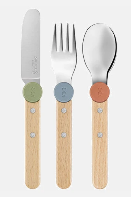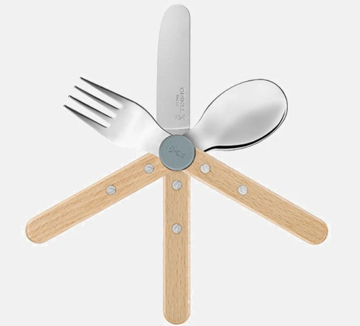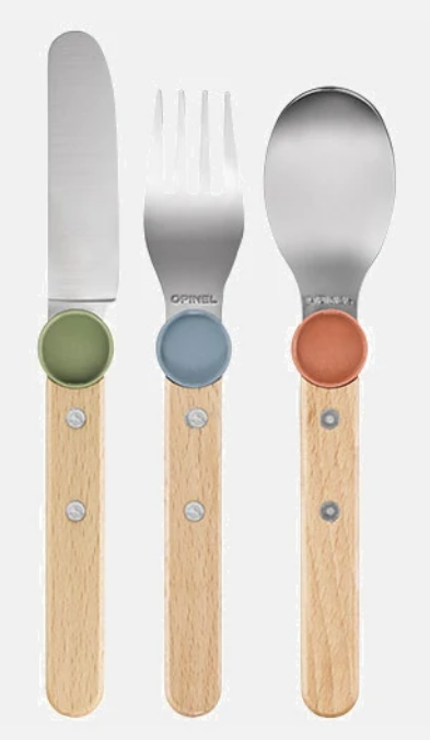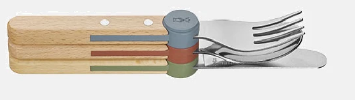 Fabriqué en France, ce set est durable et responsable : les manches sont en bois de hêtre certifié PEFC, les éléments sont en acier inoxydable robuste, et les clips ingénieux permettant d'assembler les couverts sont en plastique recyclé.