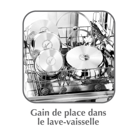Empilabilité, rangement facile et gain de place jusqu'à 50 % dans vos placards et votre lave-vaisselle