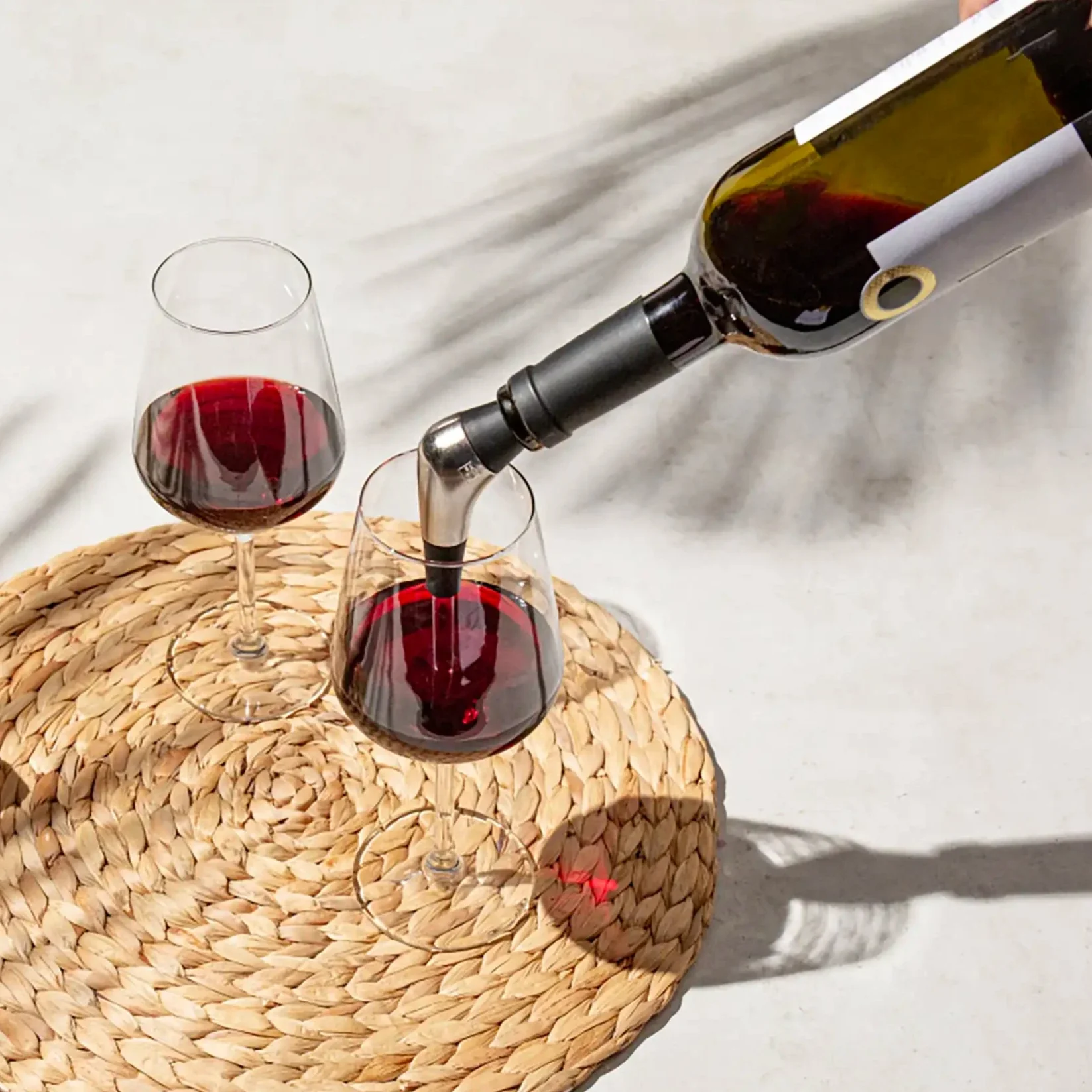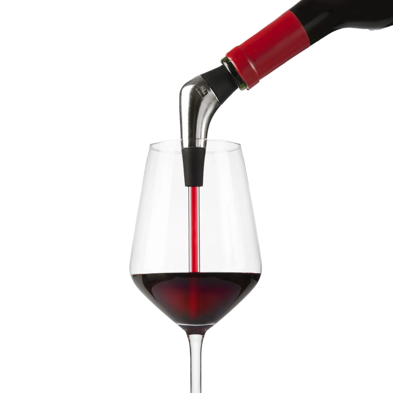 Insérez fermement le Verseur Lent de Vacu Vin dans la bouteille. Inclinez la bouteille délicatement, en veillant à ce que le verseur soit juste au-dessus du bord du verre. Le vin coulera lentement dans le verre, avec une exposition minimale à l’oxygène, ce qui aide à conserver sa saveur et ses arômes, notamment pour les vins délicats ou vieillis.